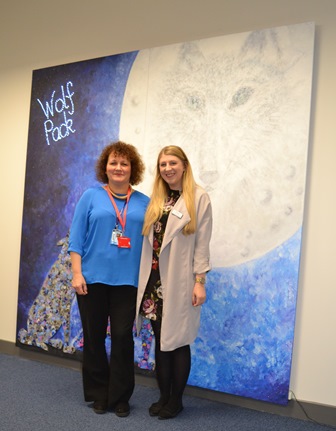 Diane said: “This was a really interesting project to work on. Alison and her team were great to work with – very friendly, positive and helpful. We researched that the team was collectively calling themselves on Social Media and ‘Wolf Pack’ seemed to be quite prominent, this contributed to the inspiration and title for my artwork.”